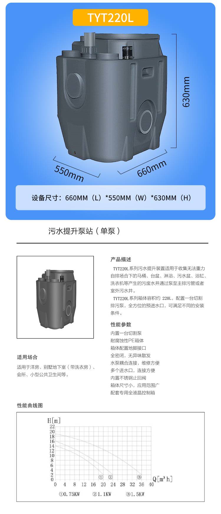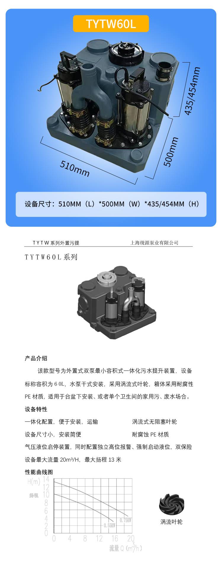 TYTW60L地下厕所污水提升设备 PE无堵塞污水提升设备厂家 统源泵业
