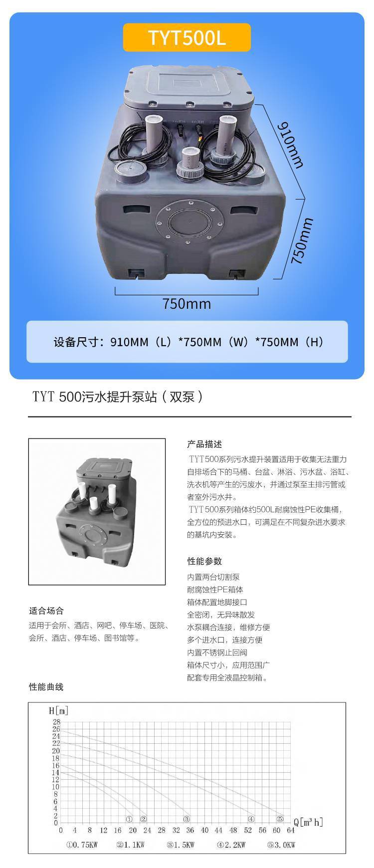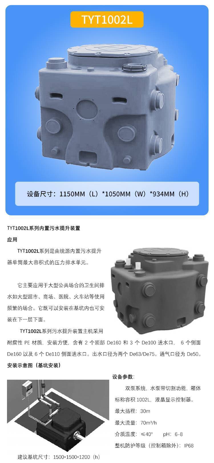 TYTW60L地下厕所污水提升设备 PE无堵塞污水提升设备厂家 统源泵业